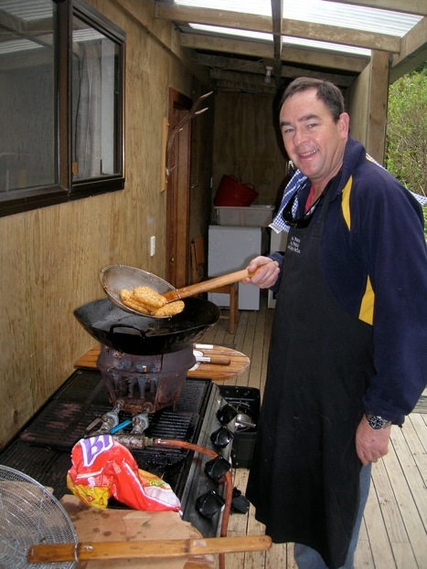 Also for introducing golf ball driving to trips plus his exploits of feeding chili to wekas - not knowing that birds cannot taste hot chili, and his attempts to discourage "corky" shags from the fishing.